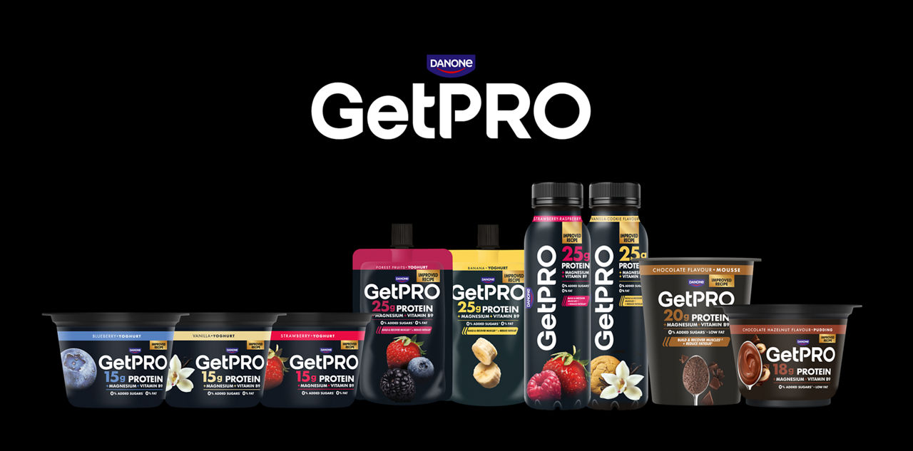 In 2023 we introduced our GetPRO brand in Ireland. Our deliciously high in protein range aims to help our people get more from their workouts, after their session ends.1 Now fortified with Magnesium and Vitamin B9, GetPRO can help you to build and recover muscle1,2 and reduce fatigue3 to optimise your sports nutrition goals. From delicious and creamy high-protein yoghurts, drinks and pouches, to tasty and velvety-smooth high-protein mousses and puddings, we’ve created a format and flavour to suit your active lifestyle, whether you’re at home or on the go. Whatever your sport and whatever your level, it’s time to feed your progress1 and be your personal best with GetPRO.